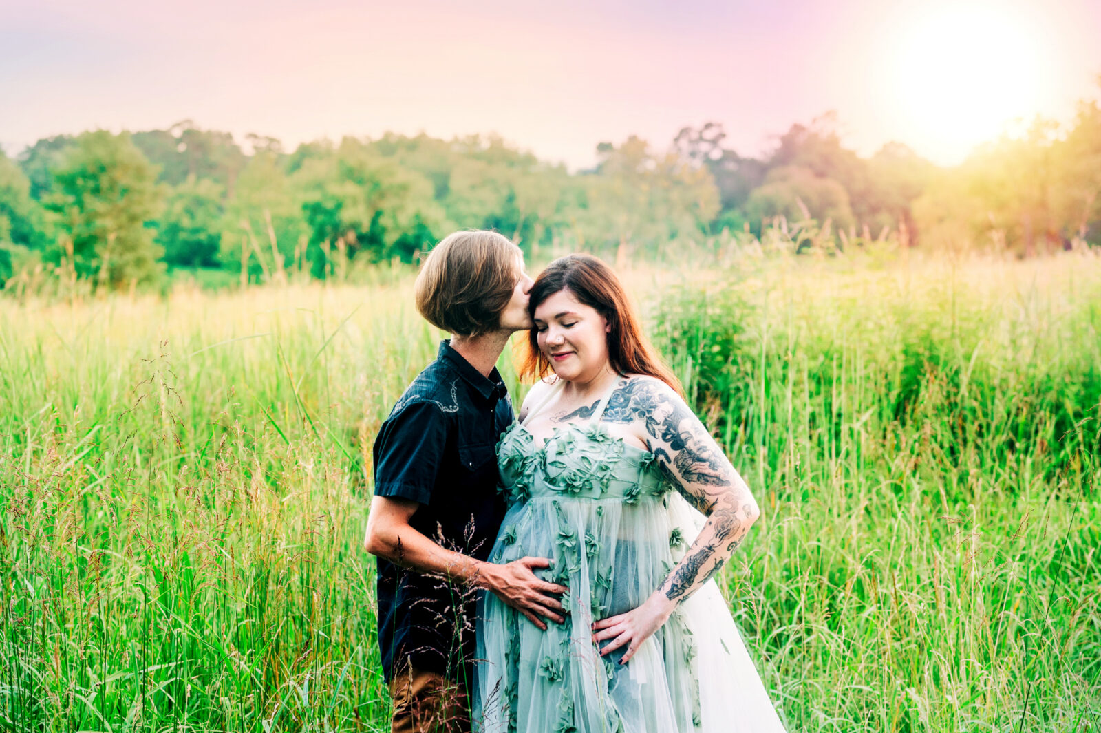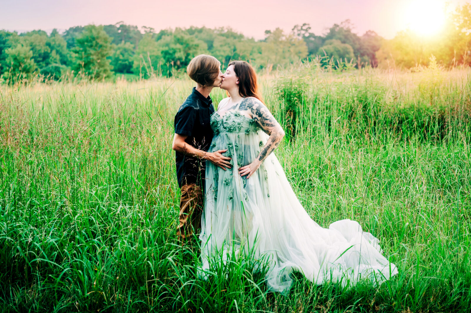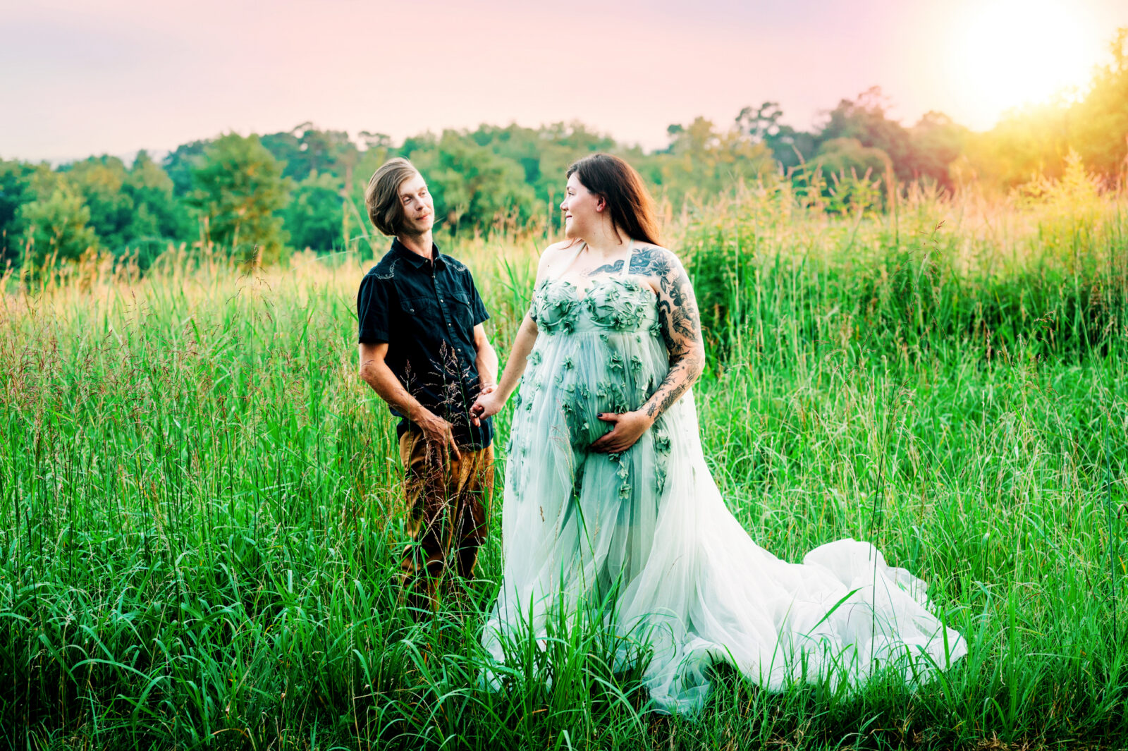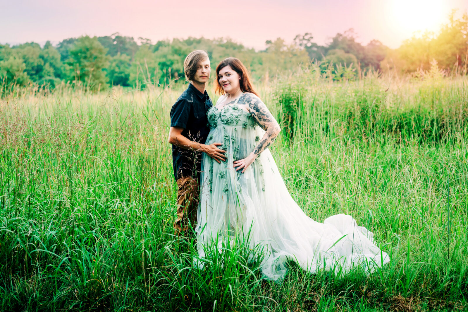 I enjoyed meeting this couple for their maternity session. It was a beautiful summer evening and the sunset was just gorgeous for their photo session. Mom wore two of my gown for her session, the green dress and the purple dress. These dresses are available in my client closet.