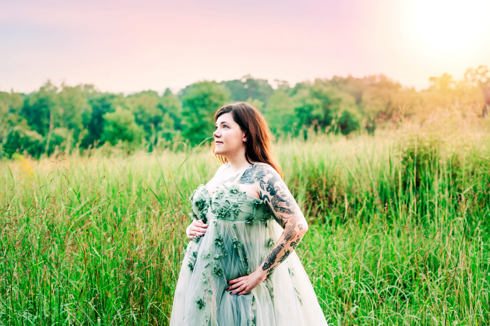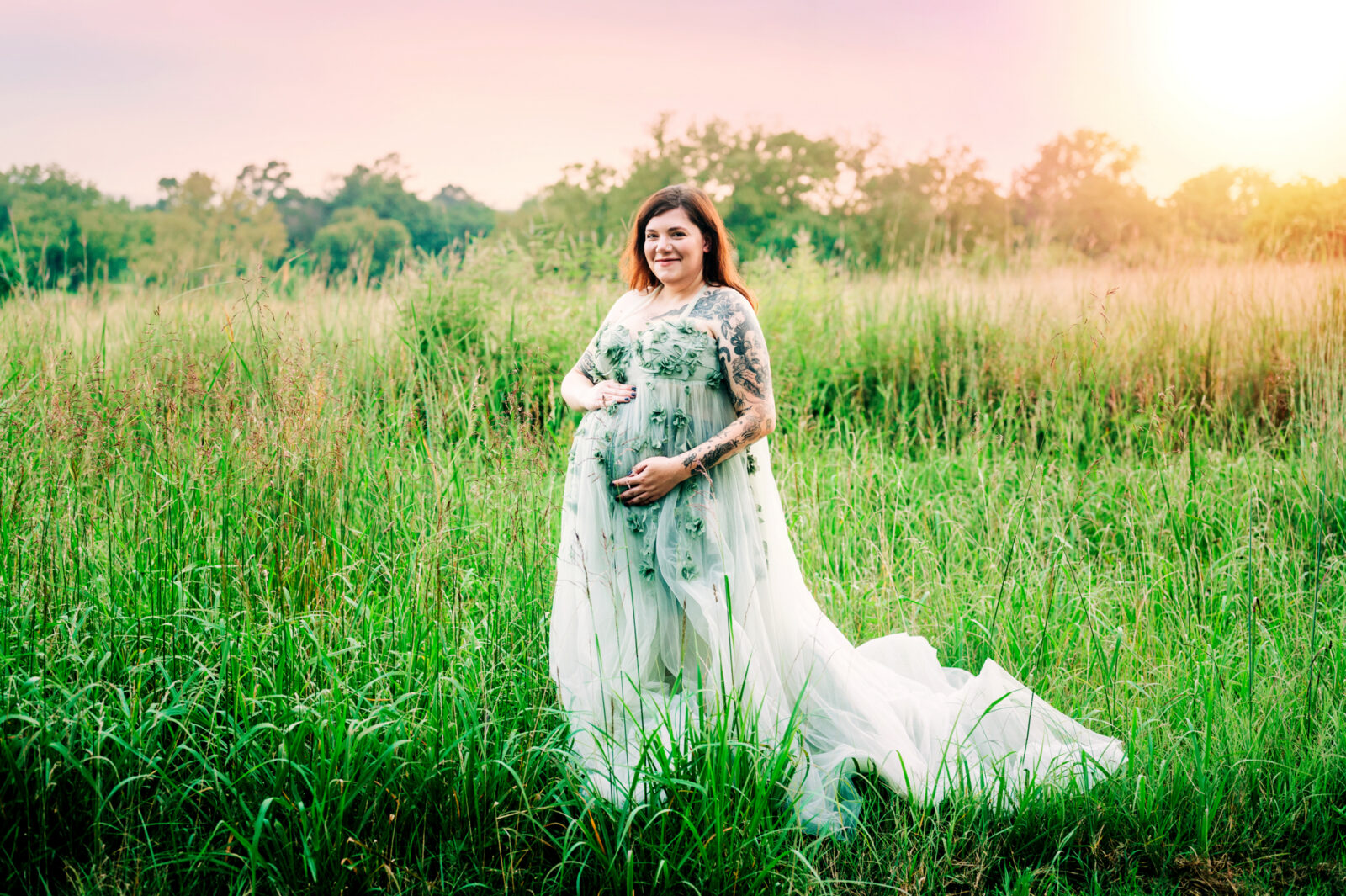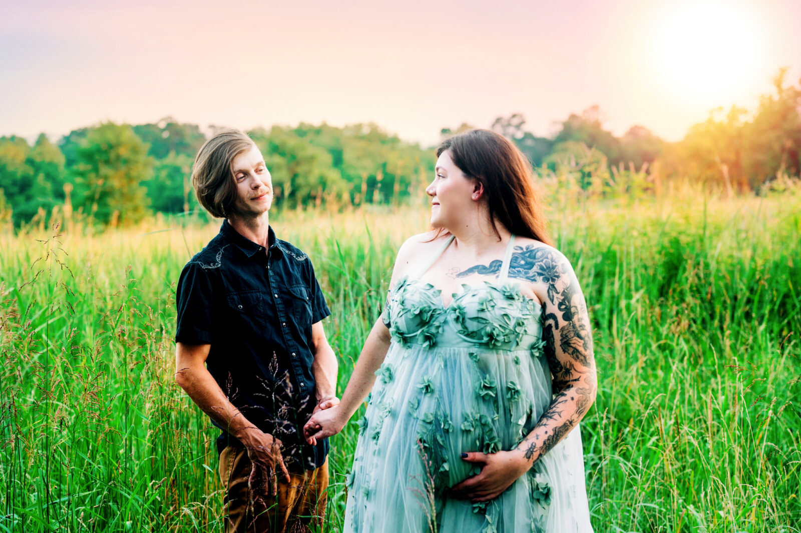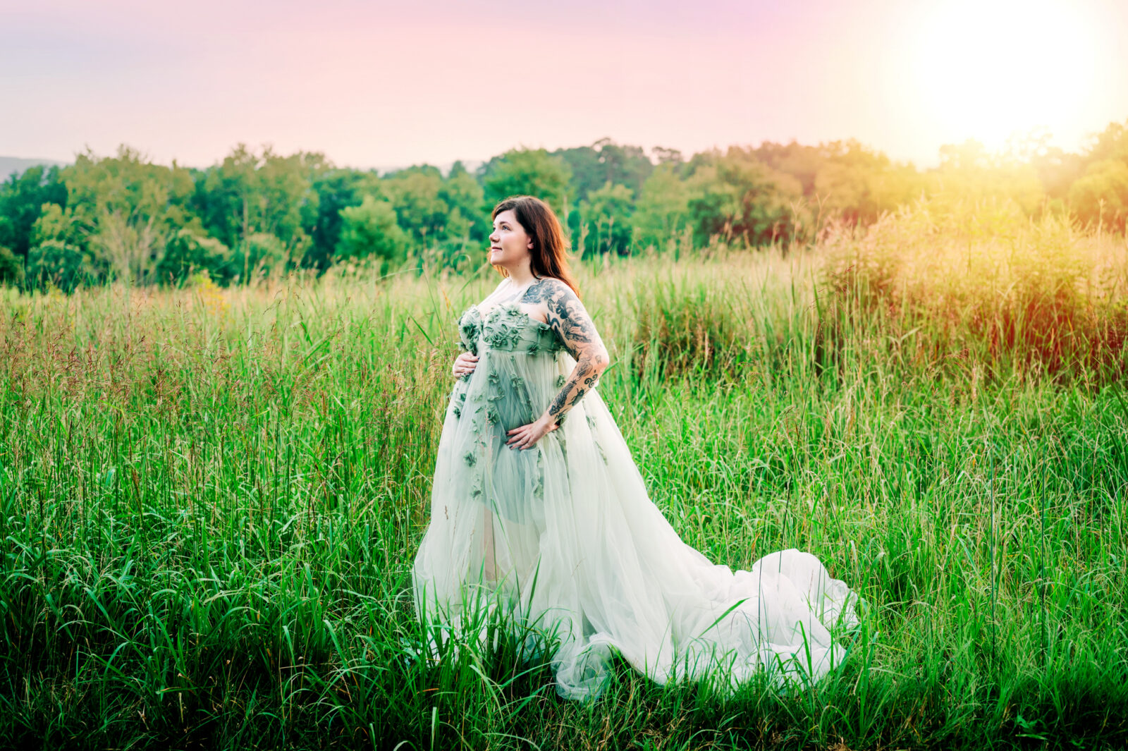 I enjoyed meeting this couple for their maternity session. It was a beautiful summer evening and the sunset was just gorgeous for their photo session. Mom wore two of my gown for her session, the green dress and the purple dress. These dresses are available in my client closet.