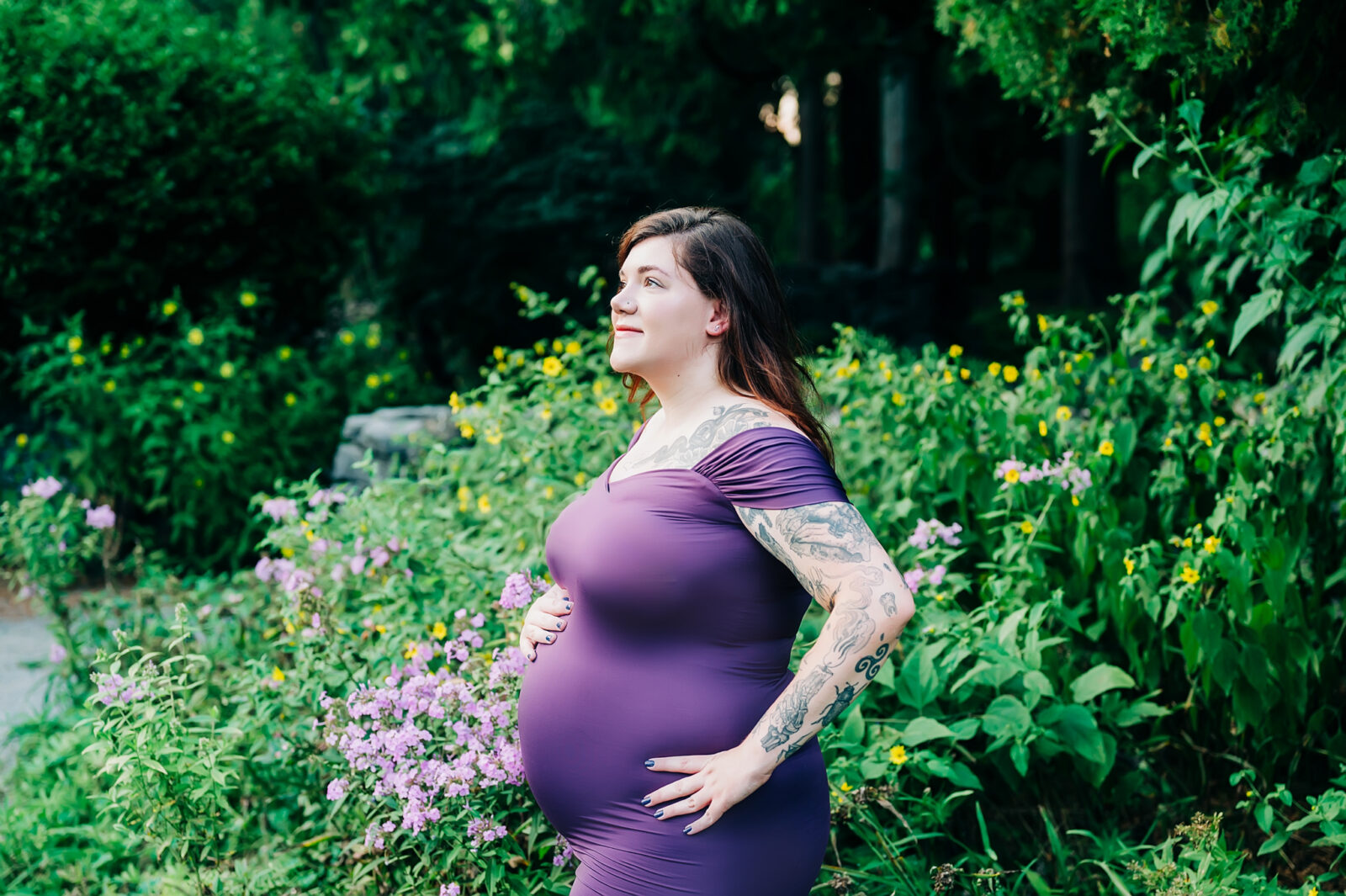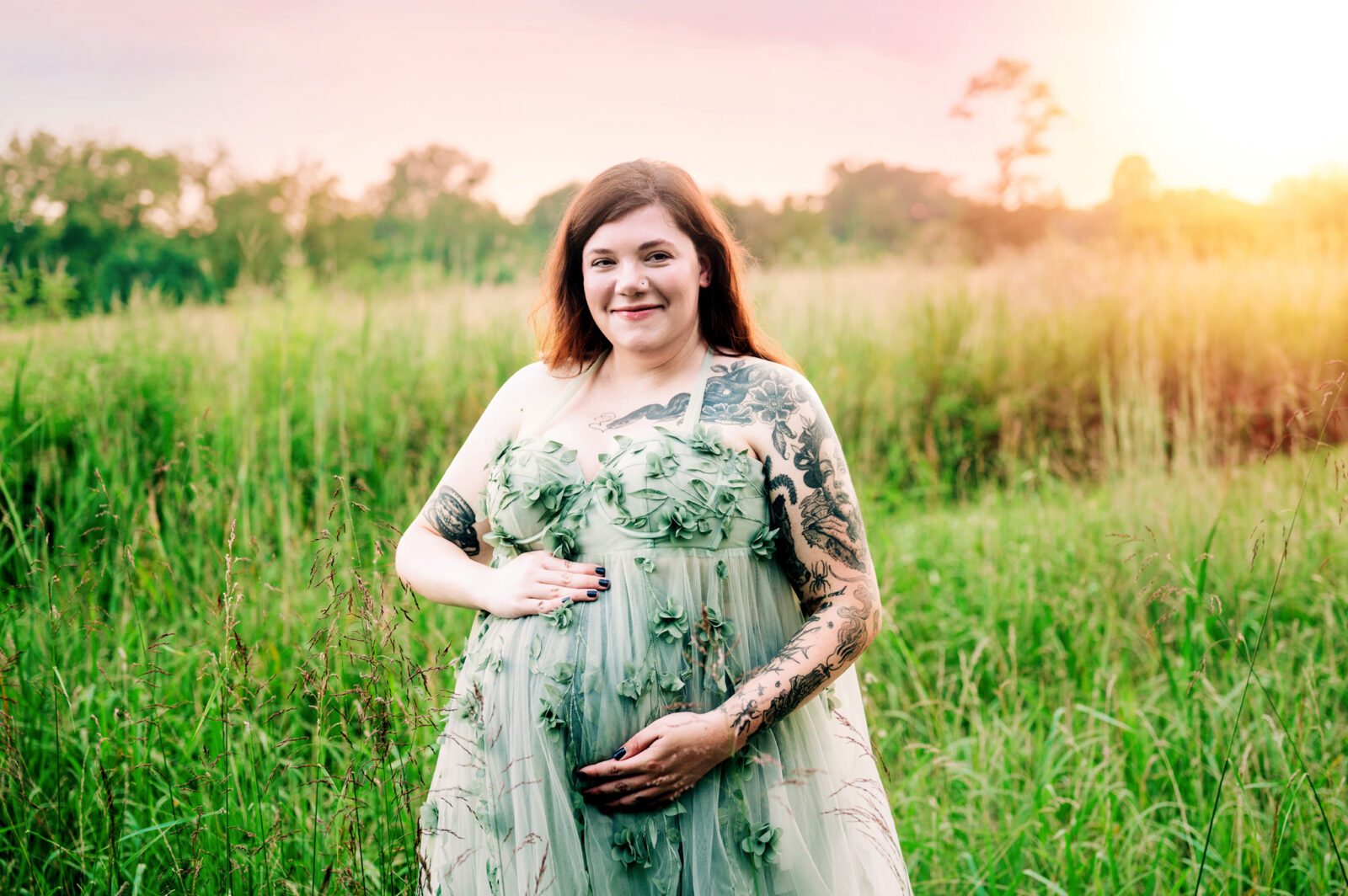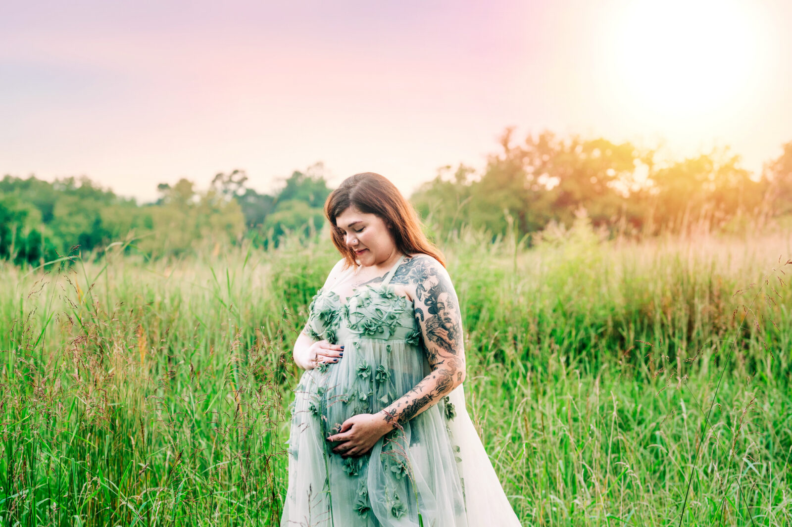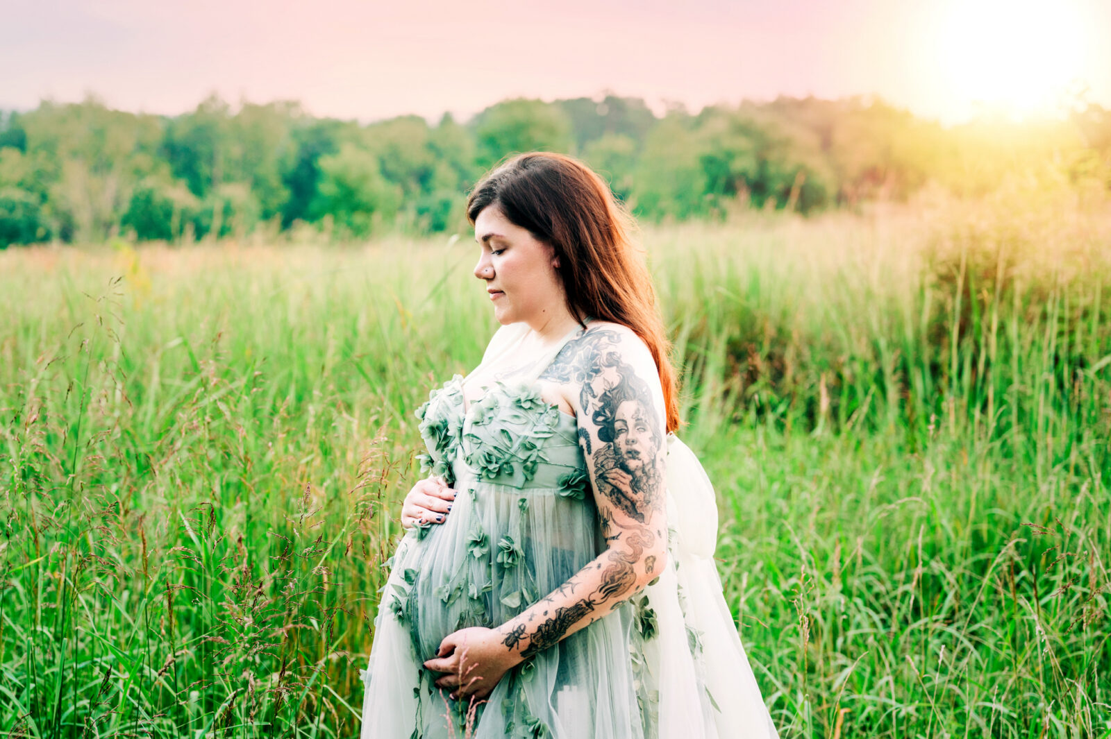 I enjoyed meeting this couple for their maternity session. It was a beautiful summer evening and the sunset was just gorgeous for their photo session. Mom wore two of my gown for her session, the green dress and the purple dress. These dresses are available in my client closet.