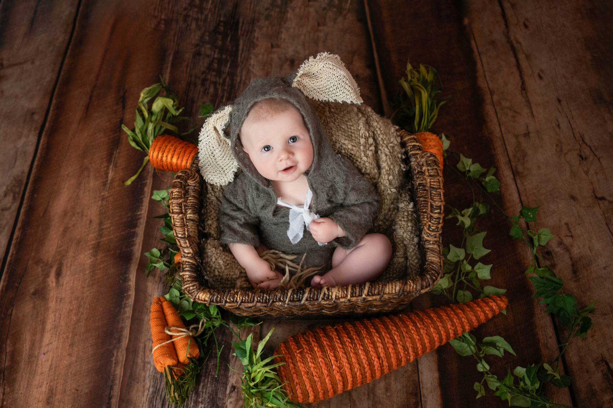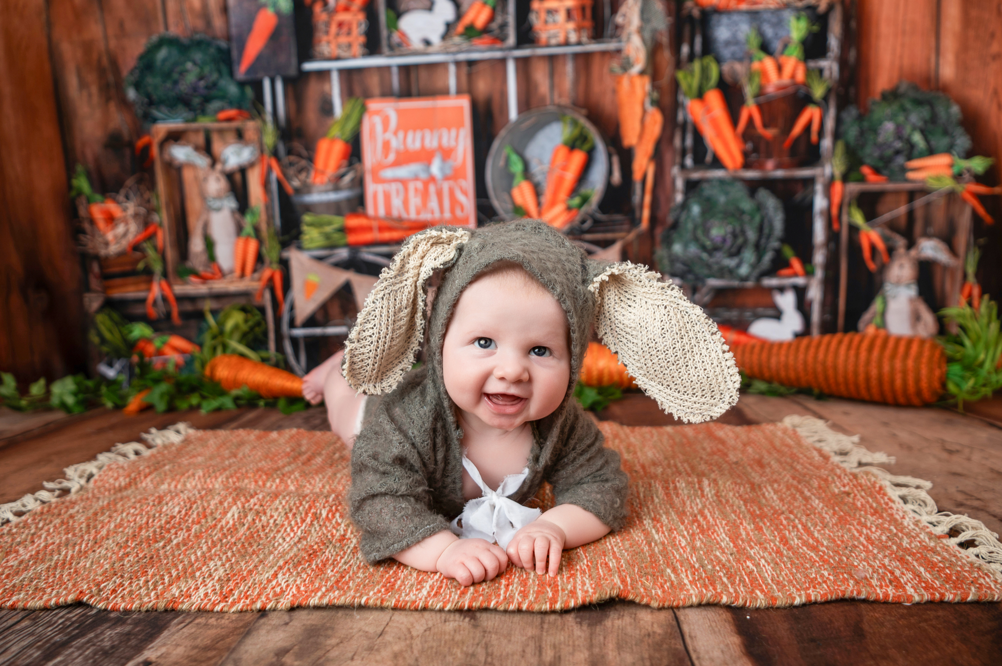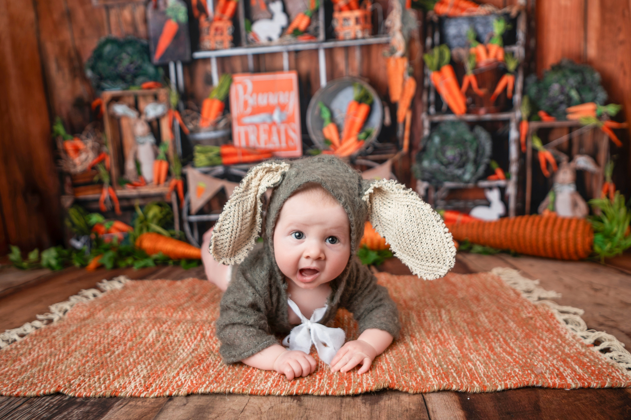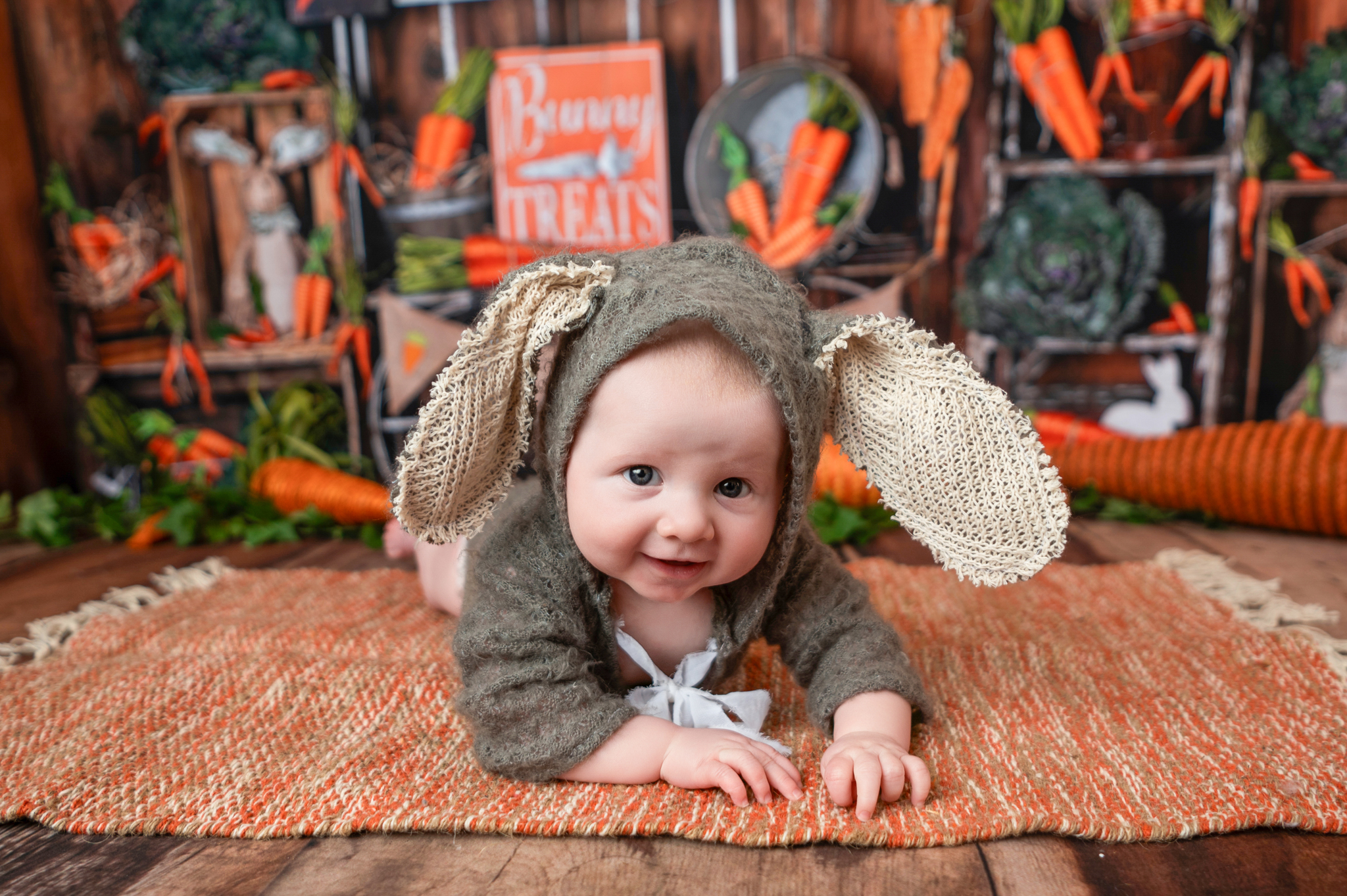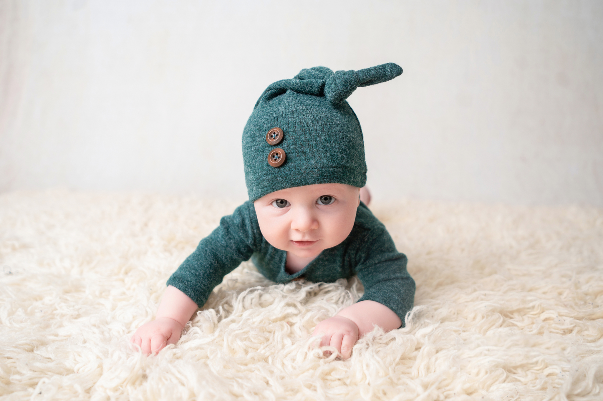 I enjoyed having this little one back in the studio for his tummy time session. Mom picked all three of his outfits from this session from my client closest. The bunny outfit was a huge hit and the cuteness was off the charts.