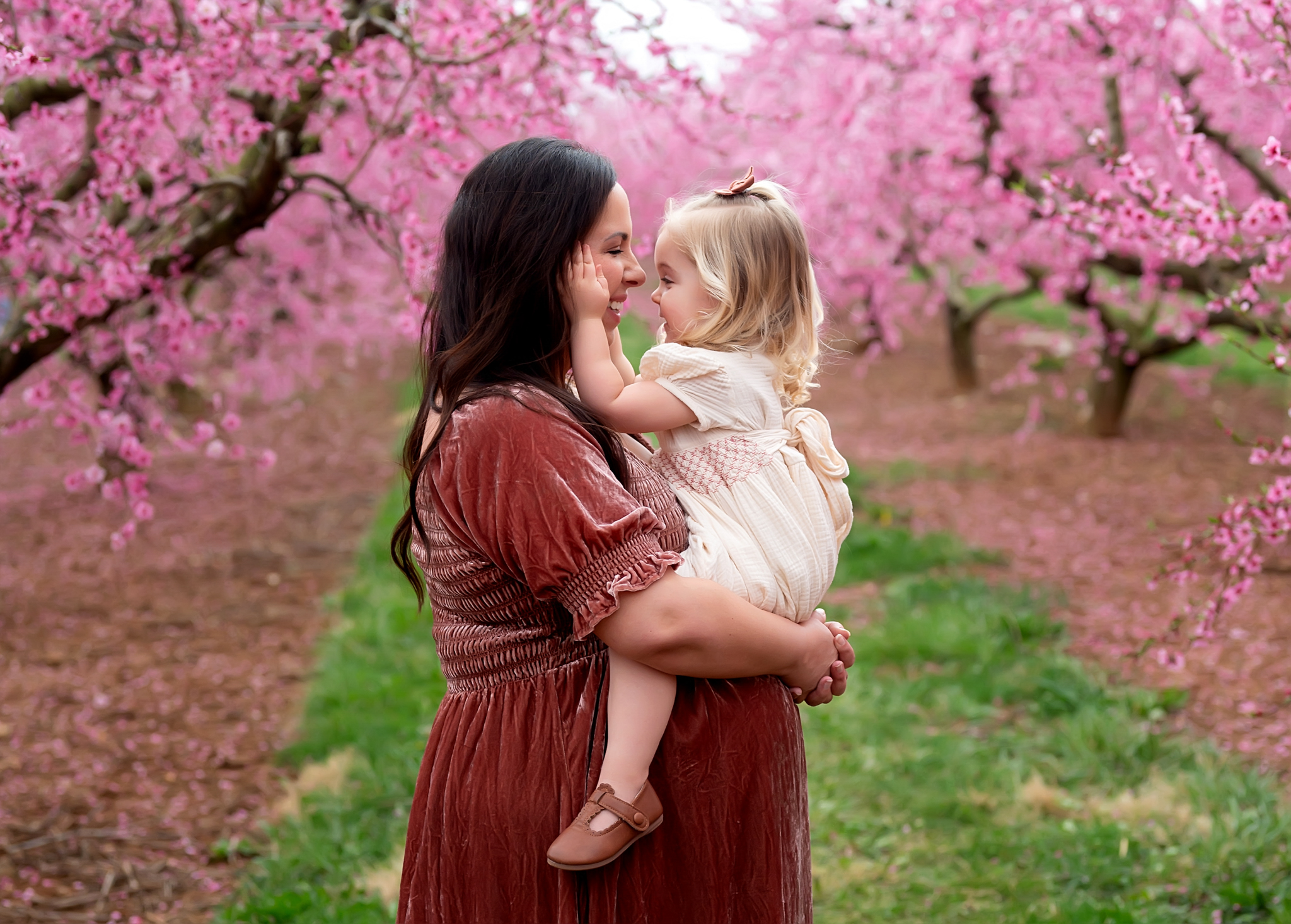 It will be spring before you know it. We kick off spring At Haley Willingham Photography with our first outdoor family mini sessions of the season, Pink Peach Blossoms at Orrs Farm in Martinsburg. These sessions are a highlight of the year for me. The pink blossoms at Orrs are so beautiful and go on forever, it is really an amazing site to see. Even if you don’t book a Spring Mini Session at Orrs with me you and your family should drive out to Orrs at the beginning of April to see the beautiful blooms and too check out their farm market. They have some amazing treats, produce and spring decor. Orrs is open every day but Sunday from 9:00am till 5:00pm.