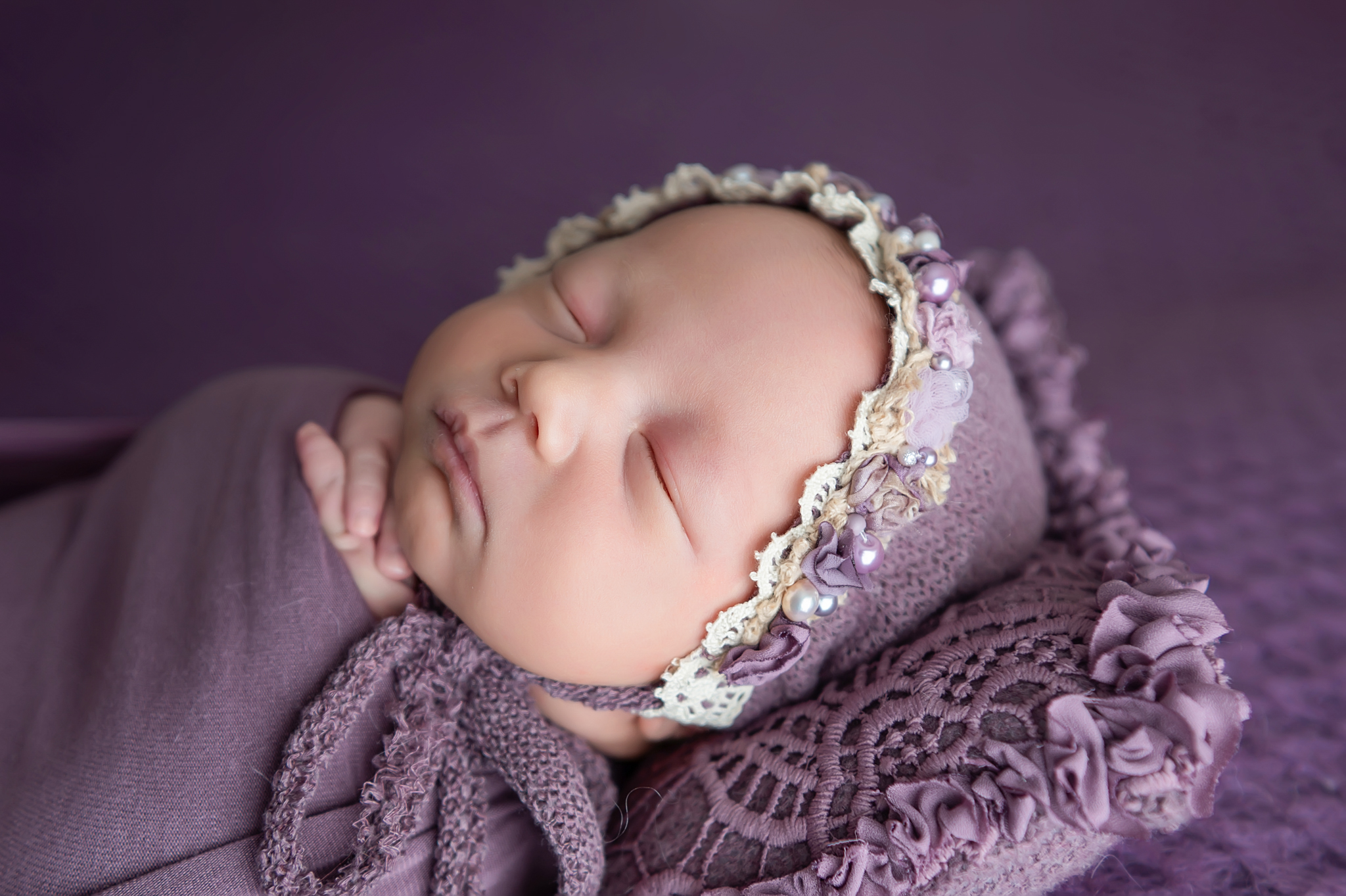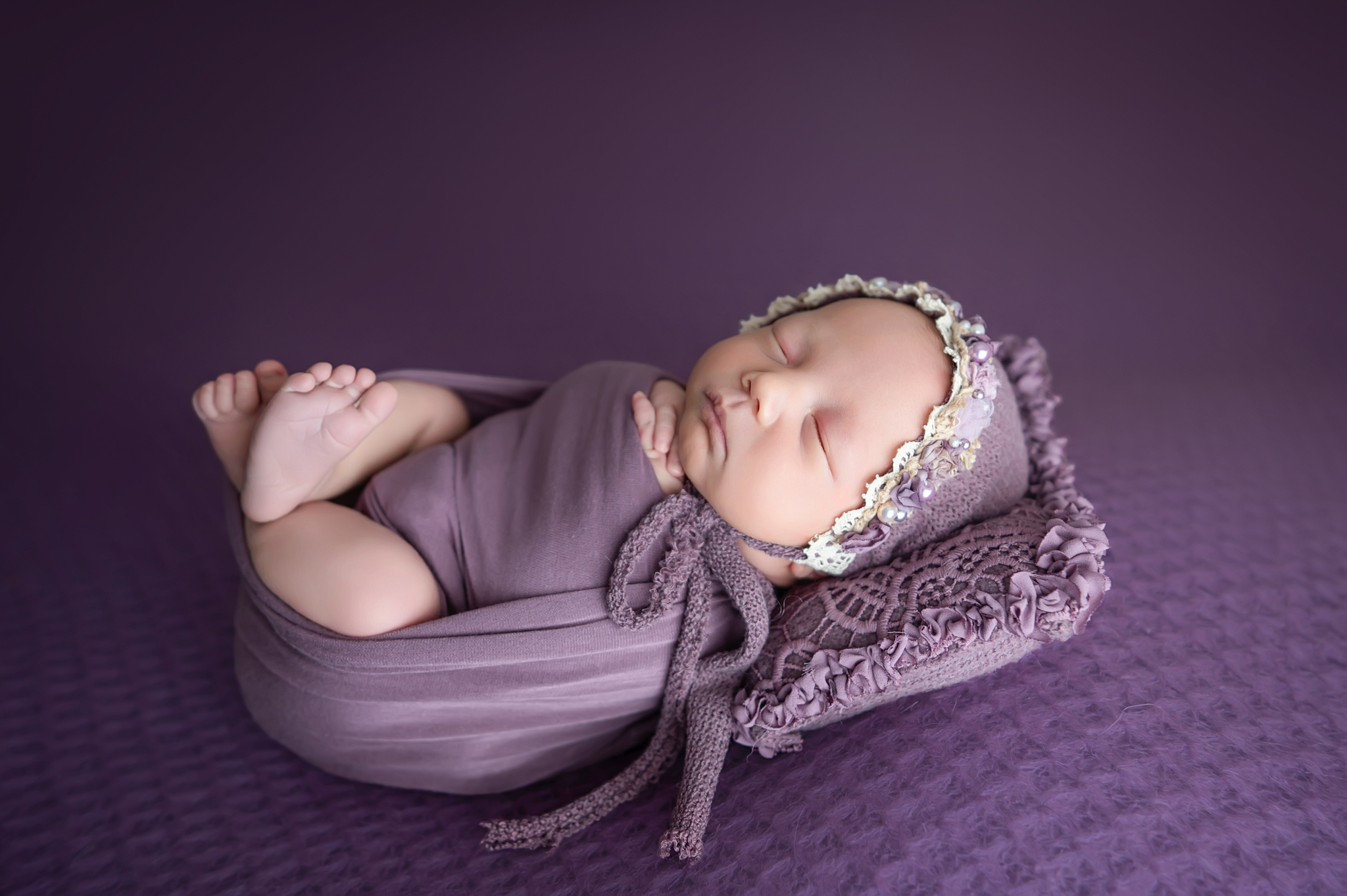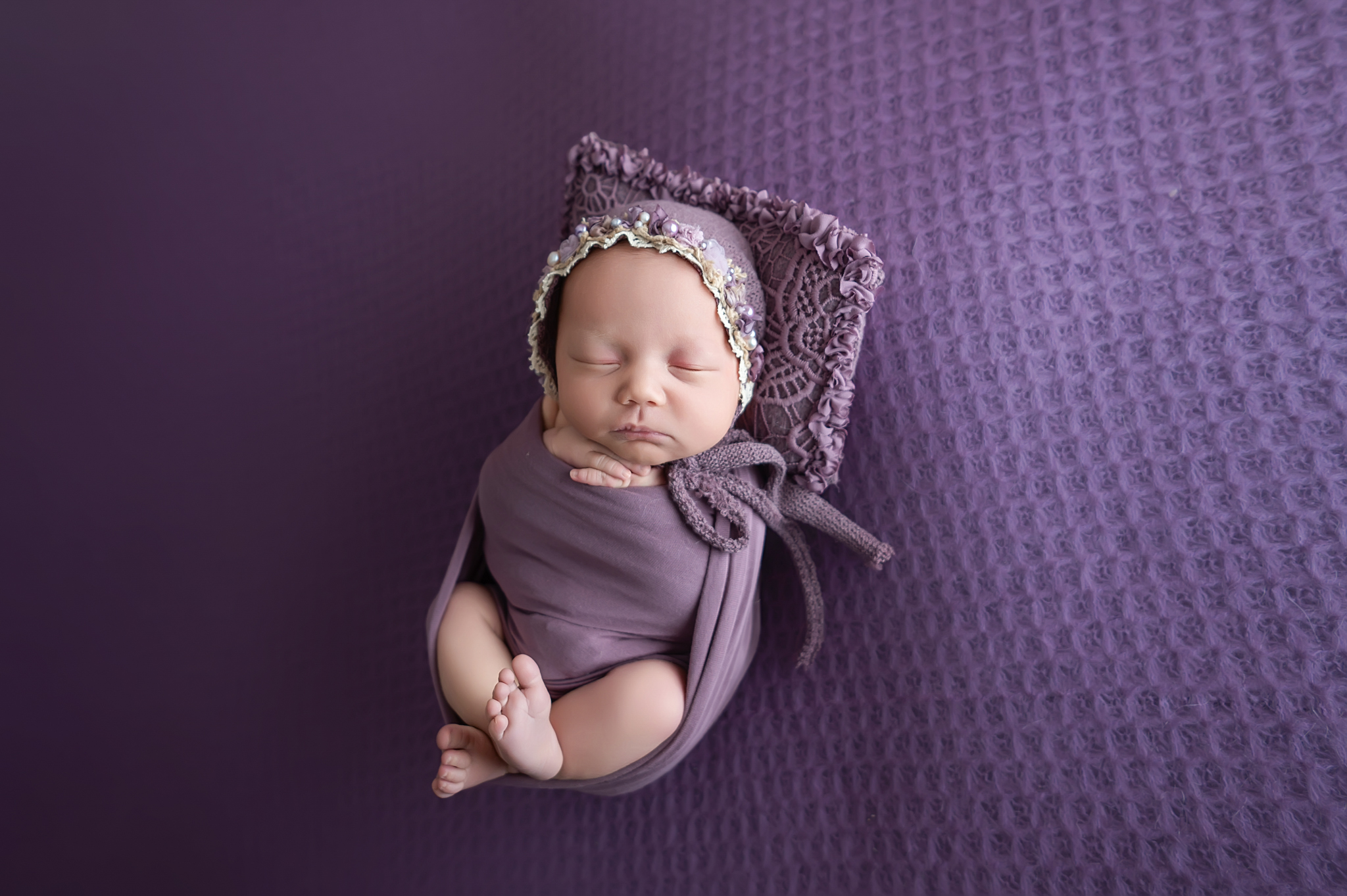 I enjoyed meeting this sweet family for their Classic Newborn and Family session at the studio. Mom wanted plum, mauve and cream for colors and picked out her favorite table fabric poses and prop poses.